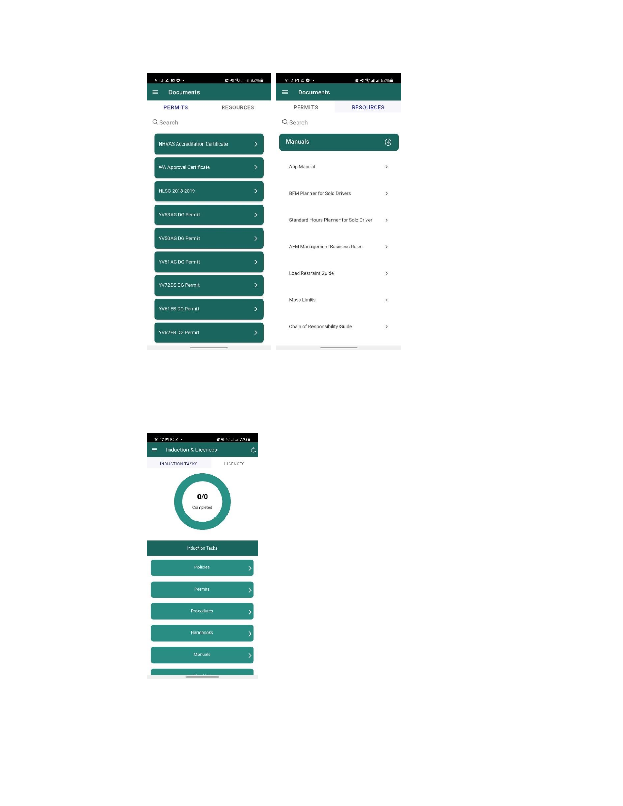 completed and pending inductions or licenses. It also allows the driver to see if he needs to re-induct
