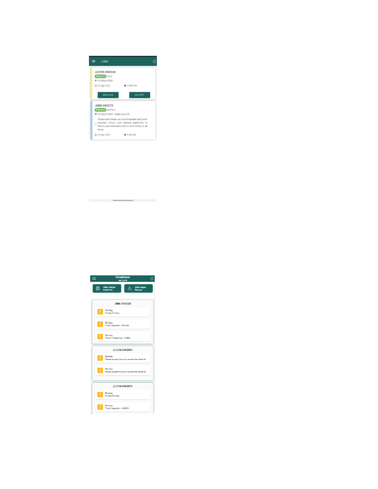 1. Dashboard Page This component displays the jobs that have been assigned to you. After accepting