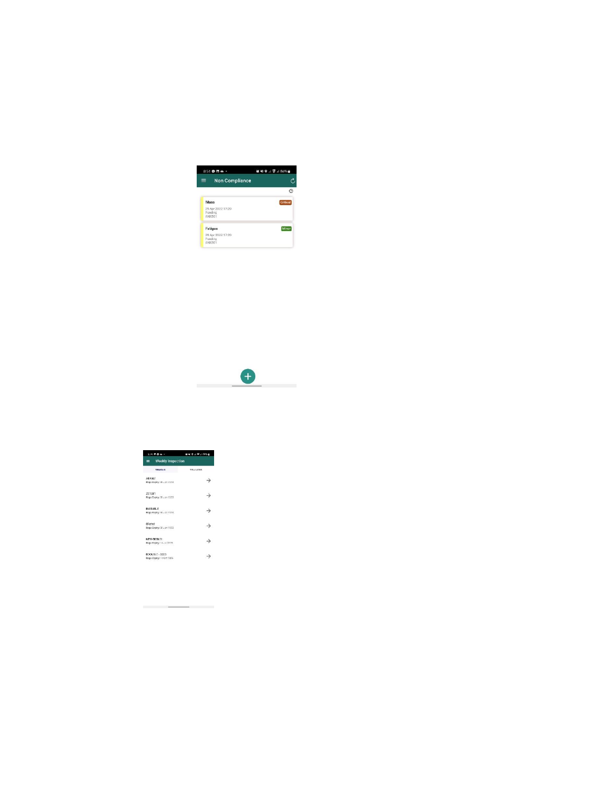 9. Weekly Inspection This component enables you to conduct a weekly inspection on Trucks and