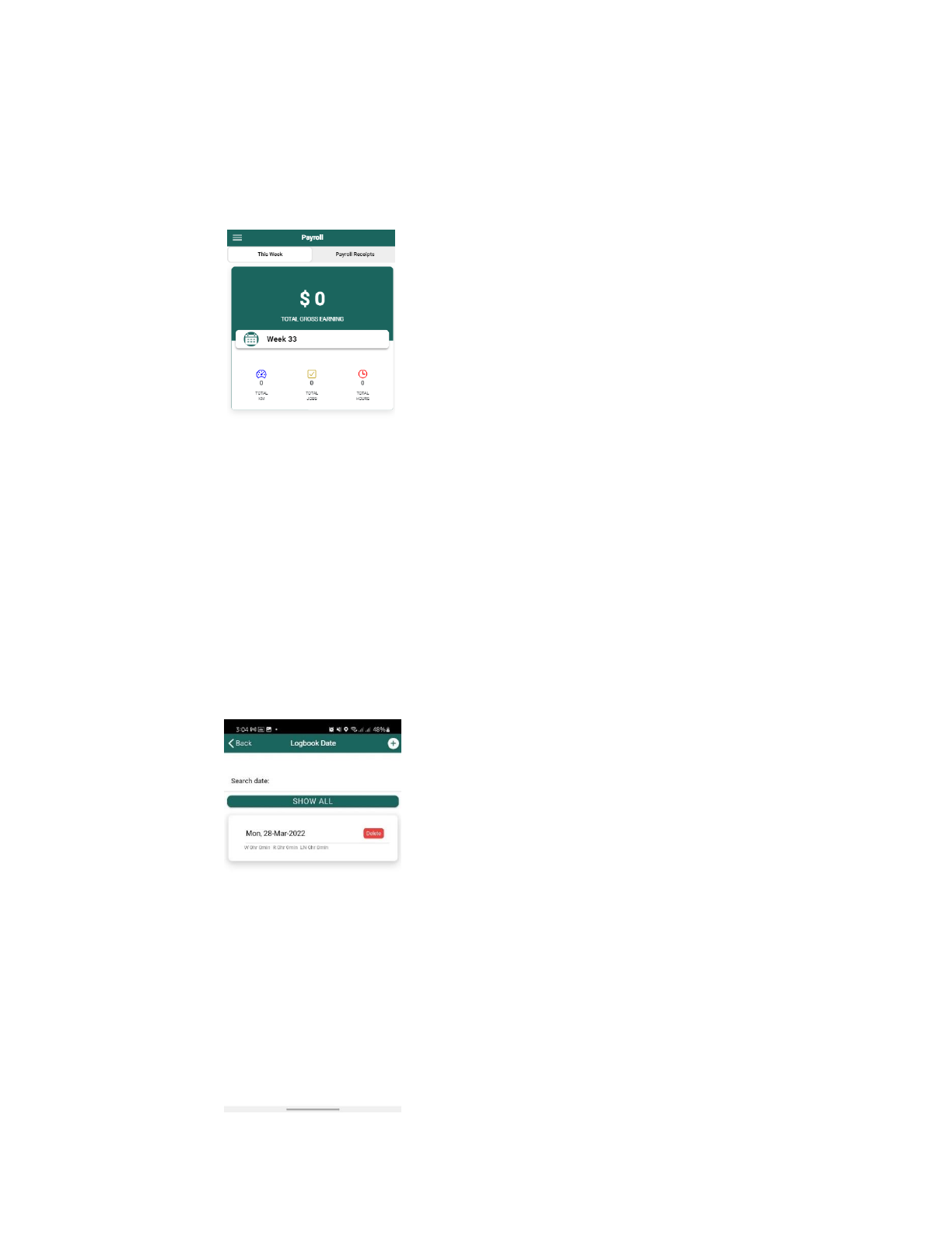 6. Payroll This component displays your total gross earnings for the current week. It also includes